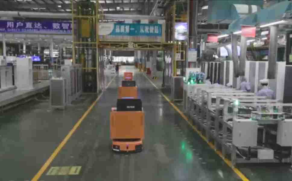 为车载冰箱物流配送打造的智能解决方案,,,包含产中物流通过潜伏举升AMR搬运至线边,,,产后成品物流智能仓储,,流程包含产中物流智能齐套入库,,,,线边安灯叫料AMR智能配送至线边,,,成品入库、、、、出库,,,,通过无人堆高车机器人,,,,智能仓储管理替代人工作业管理,,,实现更高存储、、、、更高效率、、、更具柔性化的解决方案。。。